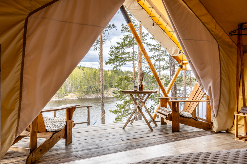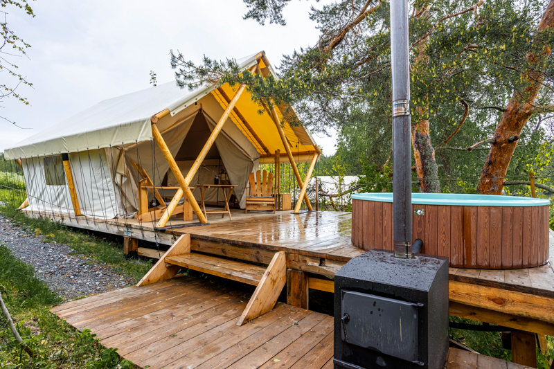 Комфортабельные шатры с горячими купелями и видом на Ладожские шхеры