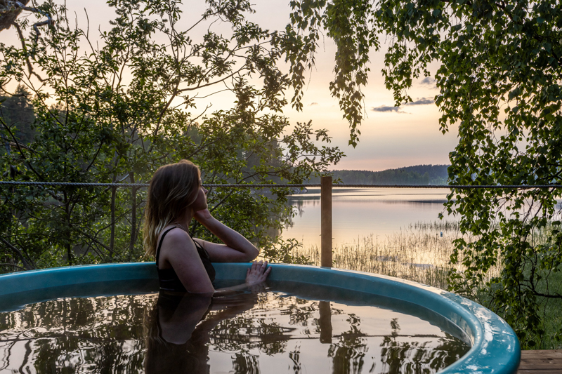 Шатры с горячими купелями и видом на Ладожские шхеры